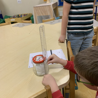 Iga laps sai töölehe ja purgi, kuhu nad panid erineva koguse lund. Seejärel mõõtsid nad joonlauaga, mitu sentimeetrit lund nad purki panid, ja märkisid selle tulemuse töölehele.