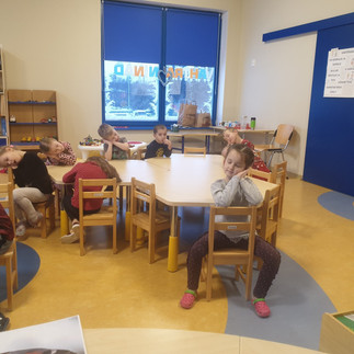 Järgmisena ootas meid loomade-lindude talvist käitumist tutvustav õppemäng " Kohane-põgene-maga", kus vaatasime erinevate Eestis elavate lindude loomade pilte ja lapsed näitasid vastavate liigutustega, kuidas antud loom või lind talve saabudes käitub. Lapsed teadsid paljude loomade talviste eluviiside kohta õigesti, oskasid vastata lisaküsimustele ja rääkida kuidas loomad erineval viisil kohanevad. Osad kohanejad kasvatavad näiteks paksu talvekasuka, teised koguvad toiduks talvevarusid ja kolmandad muudavad toidulauda vastavalt looduses leiduvale.
